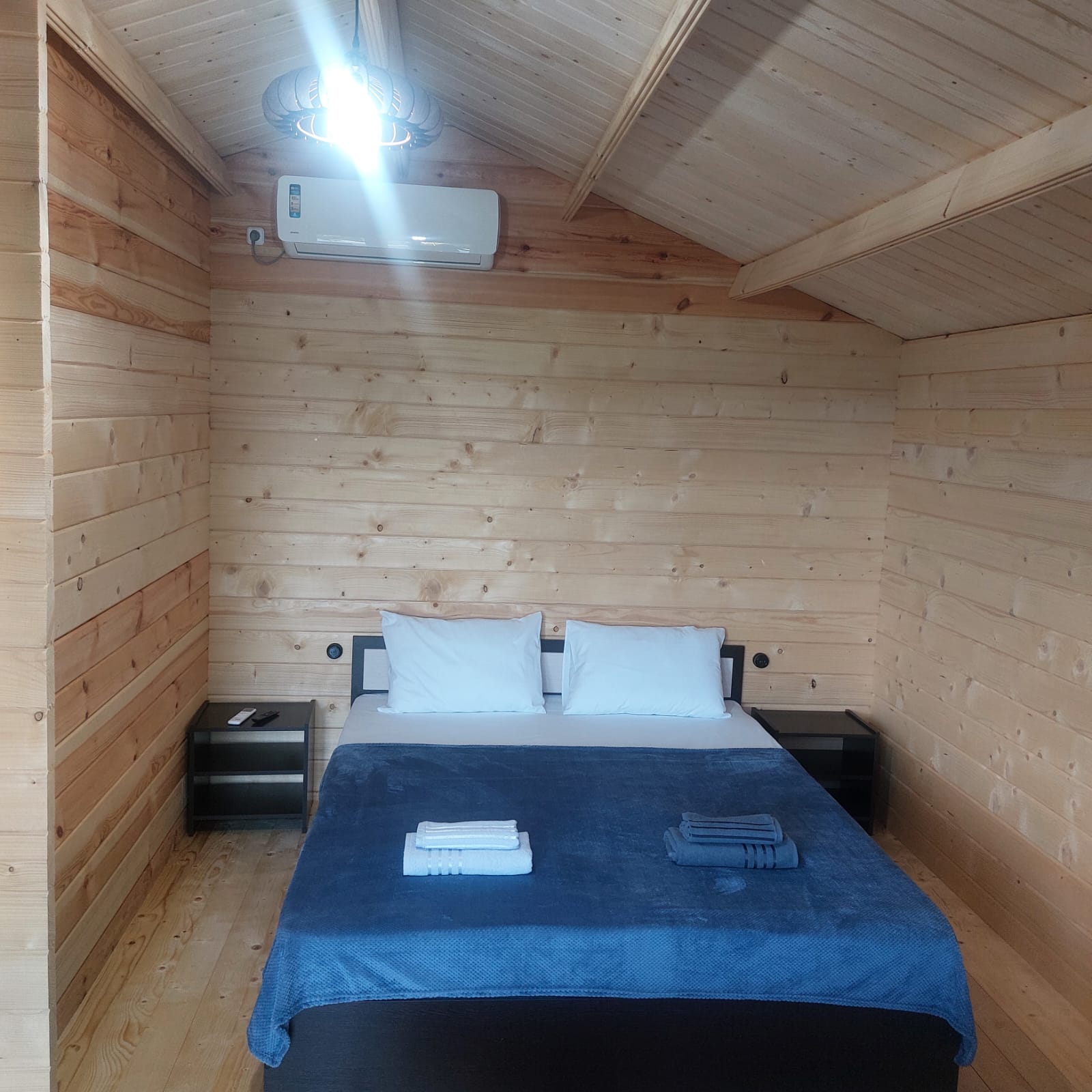 В домике душ с туалетом, постельное белье; полотенце, тапочки(при заселении, далее платно); холодильник, сплит-система, телевизор, Wi-Fi🛜.