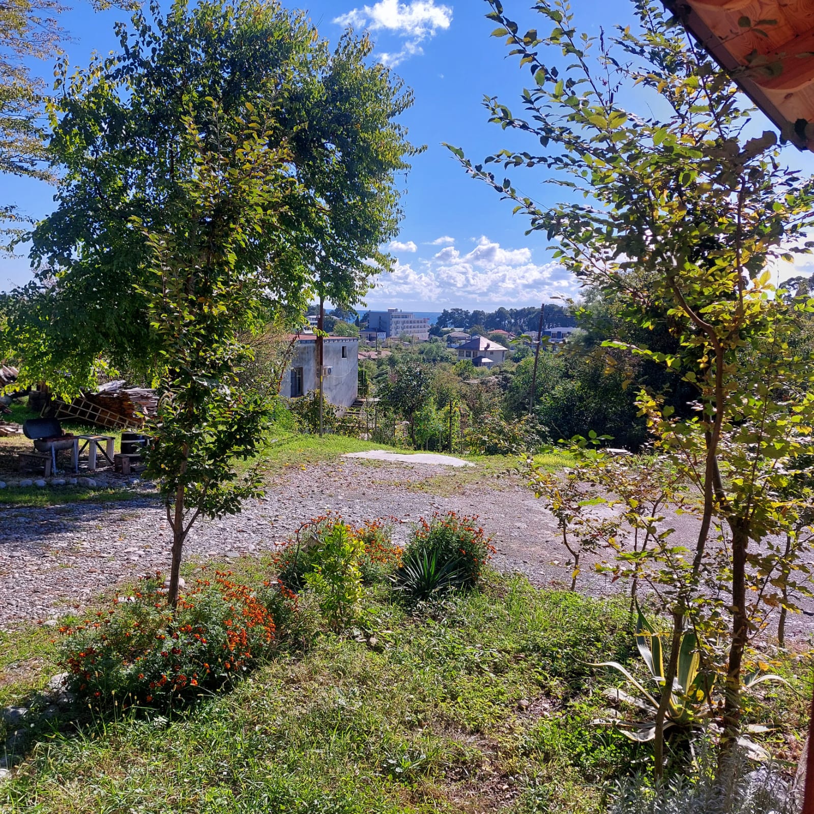 Кухня общего пользования, стиральная машина, утюг, гладильная доска, холодильник, кухонный гарнитур, посуда, Уютный зеленый двор, мангал, беседка, место под автостоянку для автомобилей. Вода горячая/холодная.